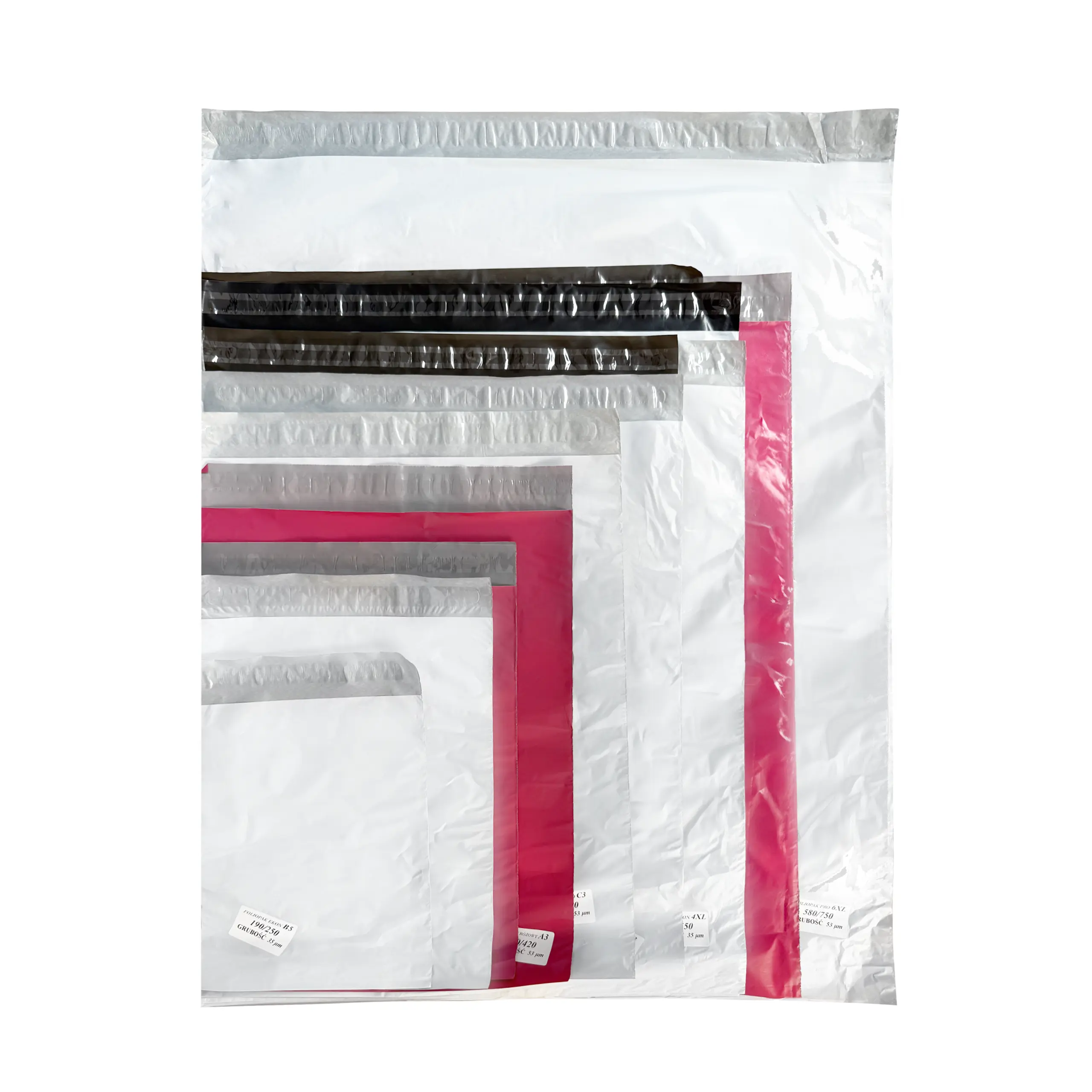 Każdy foliopak wyposażony jest w trwały pasek klejący, a powierzchnia opakowań jest przystosowana do przyklejania etykiet adresowych.