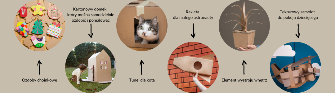 Kilka przykładów upcyklingu kartonów.